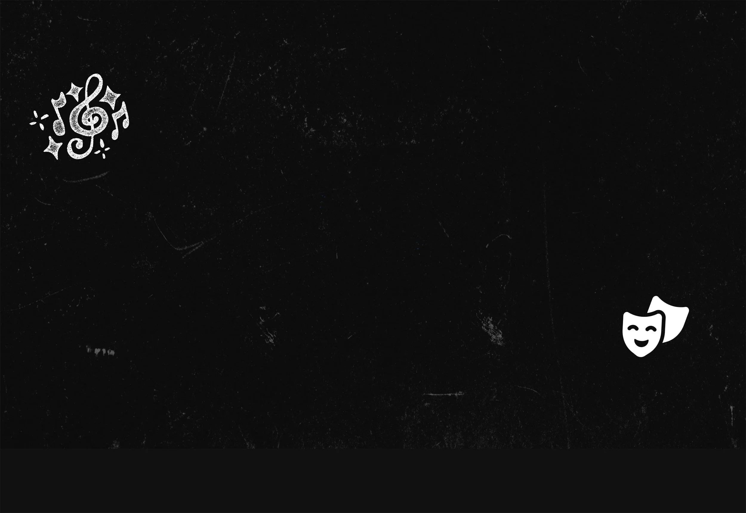 Smiling theatrical masks, one happy and one sad, with blue snowflakes